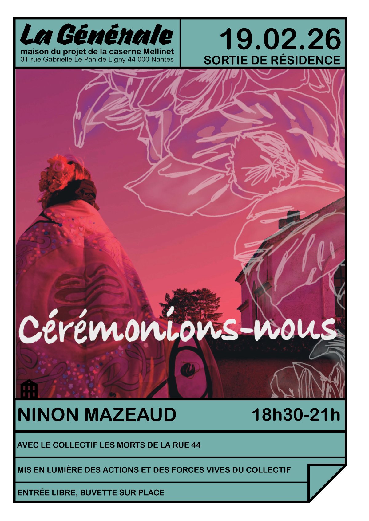 Jeudi 19 Février . 18h30-21h Un focus sur le collectif Les Morts de la Rue 44 par l'artiste Ninon Mazeaud, mettant en lumière le travail de l'association et l’engagement des forces vives qui la font vivre.
